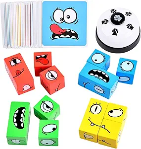 This face-changing puzzle game is a delightful mix of creativity, speed, and pattern recognition, making it perfect for both kids and adults. Players race to match facial expressions on wooden cubes to challenge cards, encouraging focus, fine motor skills, and quick thinking. The included bell adds a fun, competitive element that keeps the energy high. With its sturdy wooden pieces and colorful design, it’s both educational and entertaining — a great family game night addition.